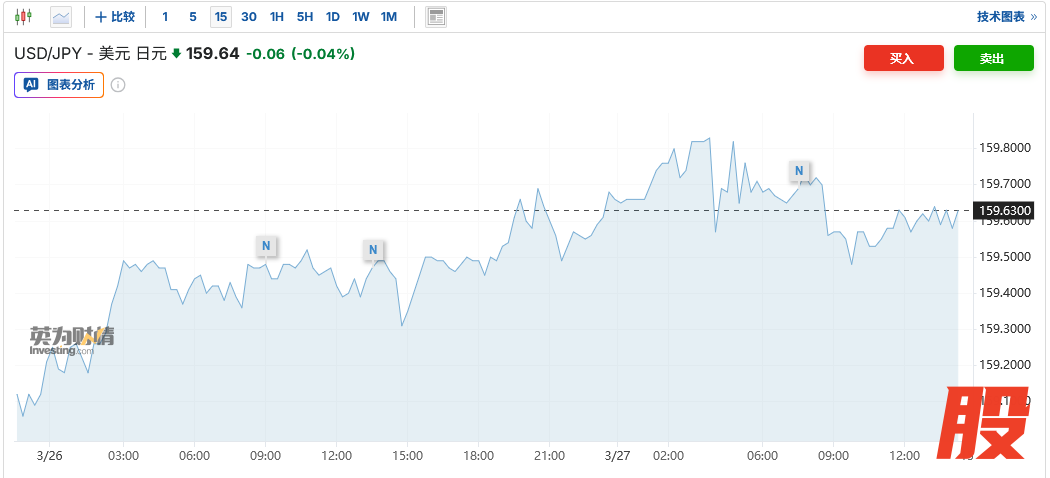 日元近期的疲弱部分原因在于美元的走强。数据显示,美元指数(DXY)本月上涨超2%,中东战事推高能源价格导致避险资金流入美元,同时市场对美联储降息的预期减弱。